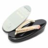 着物雑誌でもお馴染みの「華三彩」ブランドの振袖用草履バッグセットです。 「華三彩」は国内唯一の草履自社生産にこだわるメーカーブランドで、匠の技術が結集され、貴賓の風格漂う高級草履です。 花緒は、煌びやかな金彩の高級感溢れるデザインが振袖姿に相応しい華やかさをもつ逸品です。 艶やかな黒のエナメル素材の草履台には細かな金のラメが散りばめられ、足元から更なる豪華さを演出しています。 かかとの高さは約6.0cmの程よい高さで、草履の芯は赤のラインが埋め込まれ横からのスタイルに華やかさをプラスします。 足裏の当たる部分はなだらかな曲線のため、前に滑りすぎずきもの初心者の方も履きやすくおすすめの草履です。 ご成人式や結婚式の振袖スタイルをはじめ、卒業式の袴用として幅広くご利用いただけます。 最高級ブランド「華三彩」をぜひお客様の目でお確かめ下さい。