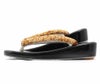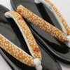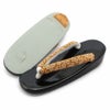 紬や小紋などにおすすめのお洒落用草履をご用意いたしました。 落ち着きのある黒の草履台はエナメルの素材を使用した品のある仕様になっております。 合成皮革で作られた草履は、お手入れもしやすく、雨の日も気軽にお使いいただけます。 シンプルな色合いなのでどんなお着物にも合わせやすく重宝します。 花緒には、桜のデザインが施され、お洒落に足元を彩ります。 かかとの高さは約5cmと程良いヒール高で、着姿を美しく魅せます。 草履台は柔らかなクッション加工になっており、衝撃にも強く長時間の歩行も疲れを感じさせない逸品です。 紬や小紋を始めとした街着やお洒落色無地などカジュアルな装いにピッタリの草履です。 いくつあっても困らない定番アイテム。きものライフの一員にいかがですか。