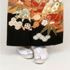 皇室御用達の正礼装ドレスである「ローブデコルテ」。 衿を大きく開け、首元や胸元を露わにしたイブニングドレスは、女性が憧れる最高礼装スタイルです。 その生地に施される、シンプルでエレガントな柄を着物の第一礼装に相応しい、洗練された草履に使用しました。 生地はオーロラ色に輝く地に、ゴールドに光り輝く柄が施された上品かつ華やかなデザイン。中央の芯と鼻緒に華やかさをプラスしています。 職人による手づくりの三枚芯高級草履のかかとの高さは約5.2cmと程よいヒール高で、歩きやすく品のある高さです。 草履に不慣れな方でも足を痛めにくく、大変リッチで美しい着姿を演出します。 結婚式などの留袖や、パーティーでの訪問着など、礼装スタイルに相応しい逸品です。