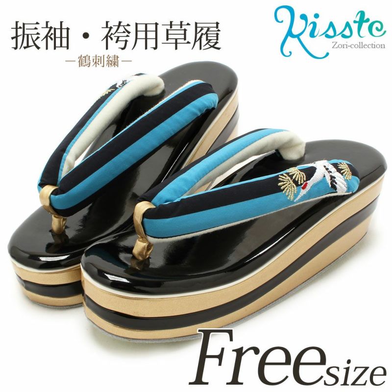 他の画像を見る ≪在庫限り≫ ストライプの花緒に鶴刺繍がお洒落な振袖用草履 草履 成人式 振袖用 <厚底 ハイヒール> Lサイズ フリーサイズ <ターコイズ 青 ゴールド 黒/鶴 刺繍> 当店特別価格 ¥ 9,900 税込 (0) カートに入れる お気に入りに登録する