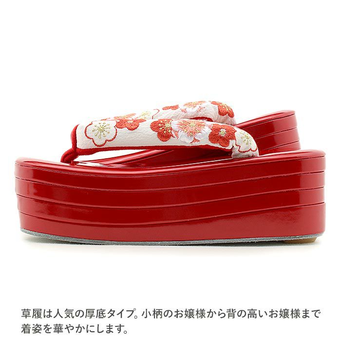 他の画像を見る 成人式や結婚式の華やかな振袖や卒業袴に合わせたい草履 草履 成人式 振袖用 レディース フリーサイズ Lサイズ 合成皮革 赤 白 梅 中国製 厚底 ハイヒール 当店特別価格 ¥ 13,200 税込 (0) カートに入れる お気に入りに登録する