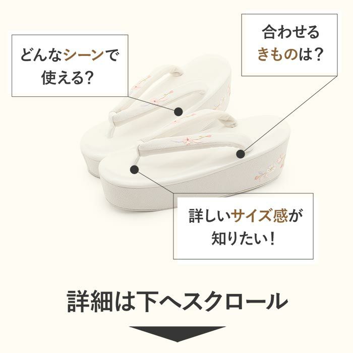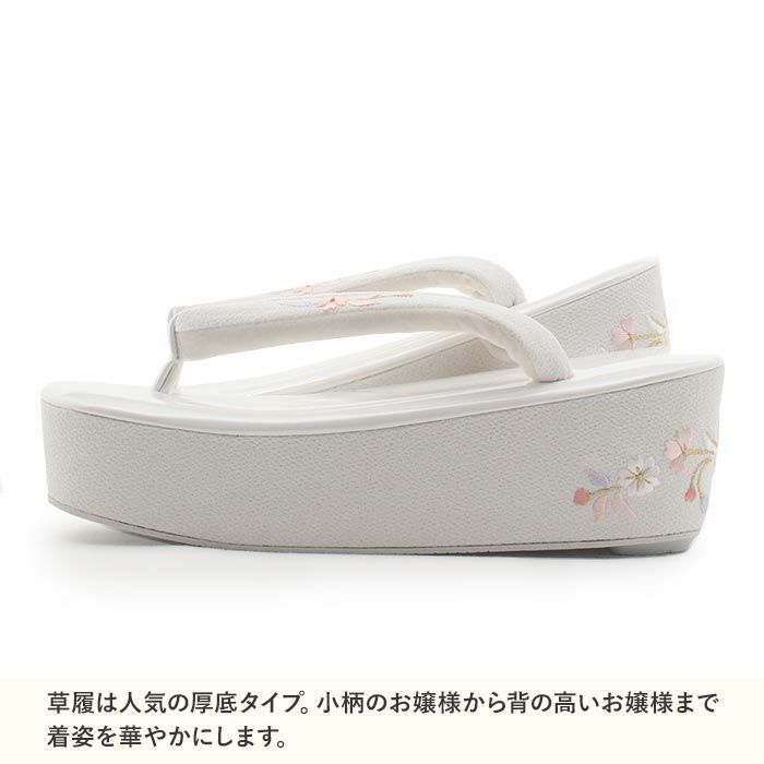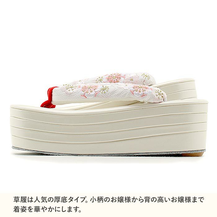 他の画像を見る 草履 厚底 成人式 振袖 Sサイズ Mサイズ Lサイズ LLサイズ 小さいサイズ 大きいサイズ 白 花 刺繍 日本製 当店特別価格 ¥ 22,000 税込 (0) カートに入れる お気に入りに登録する