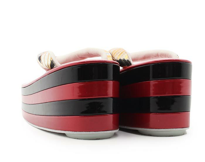 草履 成人式 振袖用 成人用 レディース 世美庵 Lサイズ レッド ブラック 華紋 菱 帯地 エナメル 合皮 4枚芯 厚底 ハイヒール バイカラー 日本製