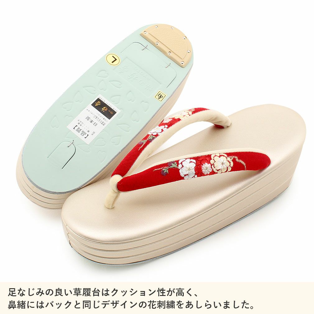 他の画像を見る 痛くなく歩きやすい、初めての方にも安心の履き心地 草履バッグセット 成人式 振袖用 成人用 フリー レッド ベージュ 2色展開 ベロア素材 がま口バッグ つまみ細工 フラワーモチーフ 2枚芯 厚底 日本製 当店特別価格 ¥ 29,700 税込 お気に入りに登録する