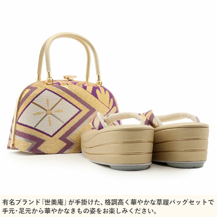 他の画像を見る 痛くなくて歩きやすい、初めての方にも安心の履き心地 留袖用草履バッグセット 訪問着用 草履バッグ 世美庵 Lサイズ ゴールド シルバー 金 銀 七宝 華紋 帯地 3枚芯 日本製 当店特別価格 ¥ 47,300 税込 お気に入りに登録する