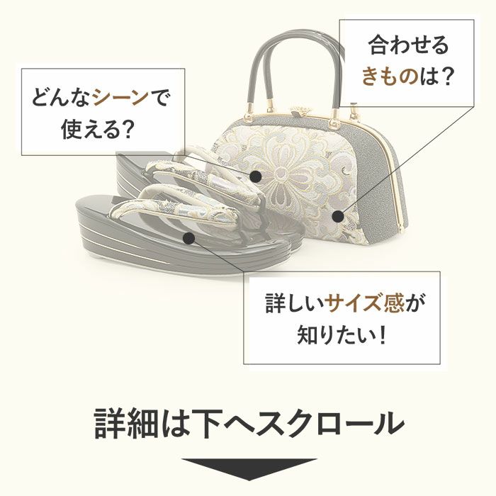 他の画像を見る 痛くなくて歩きやすい 初めての方にも安心の履き心地 留袖用草履バッグセット 訪問着用 草履バッグ キステオリジナル 岩佐 Mサイズ Lサイズ 2 シルバー ゴールド 唐花 帯地 合皮 2枚芯 日本製 当店特別価格 ¥ 41,800 税込 お気に入りに登録する