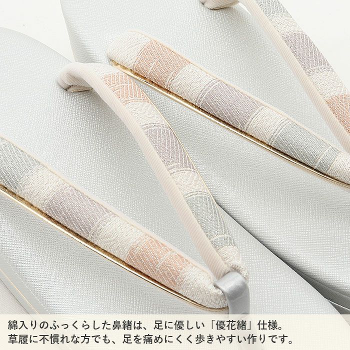 他の画像を見る 痛くない 歩きやすい、初めての方にも安心の履き心地 【アウトレット】 草履バッグセット 留袖用 訪問着用 草履バッグ 世美庵 L シャンパンゴールド アイボリー ピンク 帯地 3枚芯 優花緒 日本製 当店特別価格 ¥ 41,800 税込 お気に入りに登録する