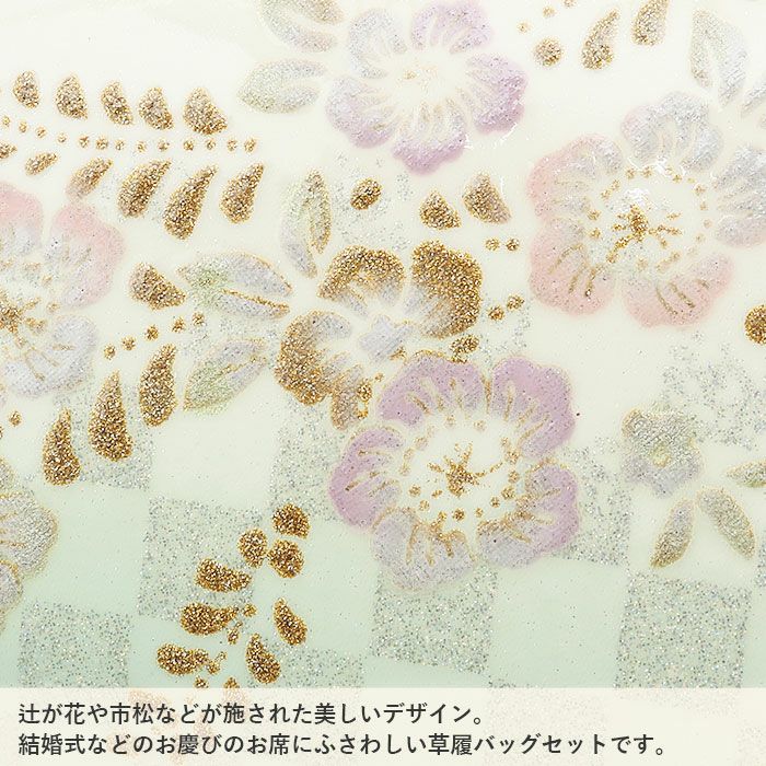他の画像を見る 痛くない 歩きやすい、初めての方にも安心の履き心地 草履バッグセット 留袖用 訪問着用 草履バッグ 華三彩 世美庵 フリー L ゴールド シルバー ラメ 金 銀 霞紋 織地 合皮 2枚芯 日本製 SALE 定価 ¥ 38,500 のところ 当店特別価格 ¥ 34,650 税込 カートに入れる お気に入りに登録する