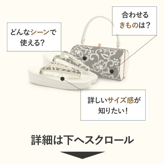 他の画像を見る 華やかな振袖に合わせたい かわいいバニティ草履バッグセット 振袖 草履バッグセット 成人式 草履バッグセット 振袖用 振り袖 厚底 フリー Lサイズ 白 黒 灰 全3色 レース フラワー ハイヒール 和洋兼用 当店特別価格 ¥ 47,300 税込 カートに入れる お気に入りに登録する