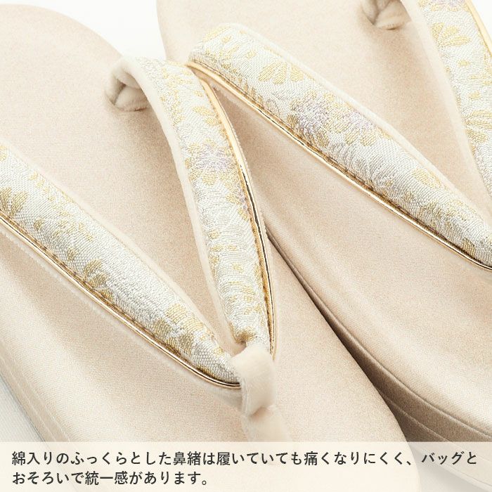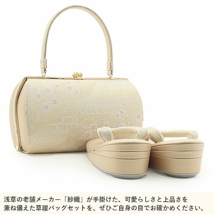 他の画像を見る 痛くない 歩きやすい、初めての方にも安心の履き心地 【アウトレット】 草履バッグセット 留袖用 訪問着用 草履バッグ 世美庵 L シャンパンゴールド アイボリー ピンク 帯地 3枚芯 優花緒 日本製 当店特別価格 ¥ 41,800 税込 カートに入れる お気に入りに登録する
