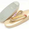 ゴールドをベースにしたバッグ生地と花緒には、金糸をふんだんに使用して大きな菊華紋や桜などが織り込まれ、彩り豊かで高級感があり振袖スタイルに相応しい華やかさをもつ逸品です。