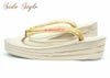 草履は職人さんの手作りによる金箔が散りばめられたゴールドの艶やかなエナメル3枚芯優花緒草履。
