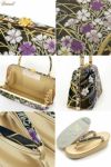 バッグと同じデザインの草履の花緒が統一感をプラスし、お着物姿をさらに豪華に演出します。
