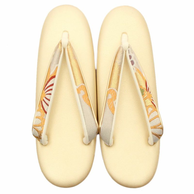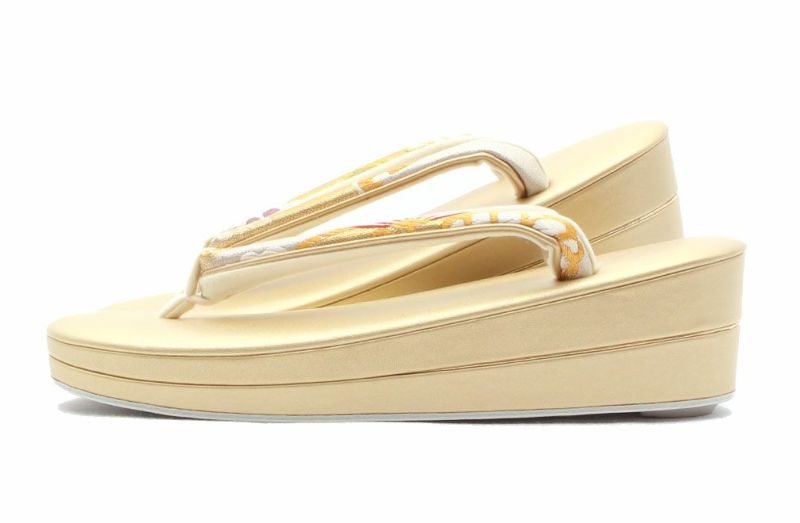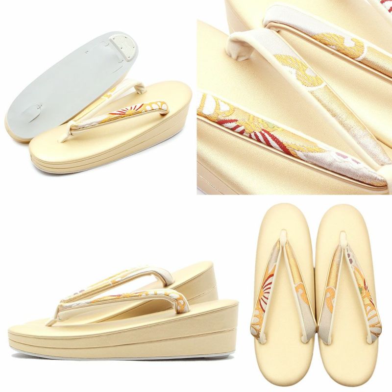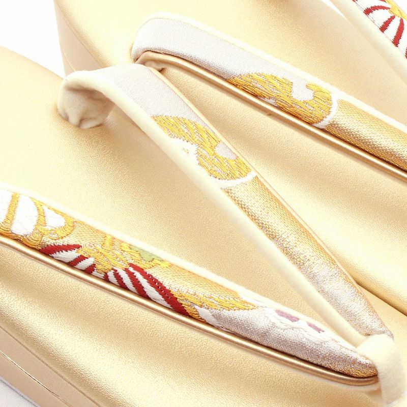 艶を抑えた上品なゴールド色の草履は、かかとの高さが約5.7cmと程良いヒール高の高級2枚芯。