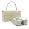 バッグ生地と花緒には、金銀糸をふんだんに使用して柄を描いた、清楚で上品なデザインです。