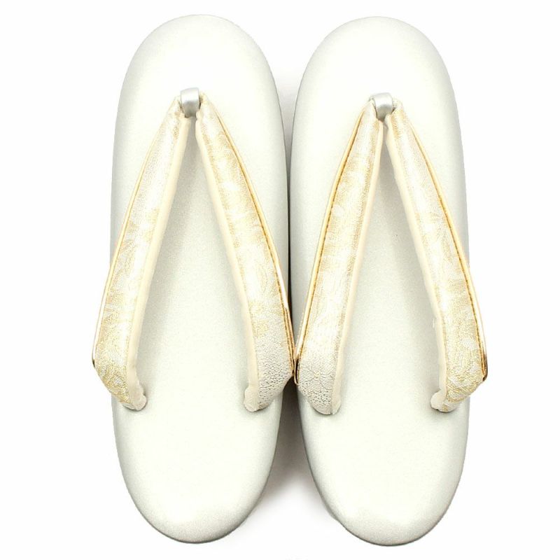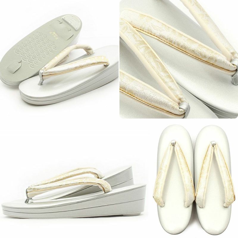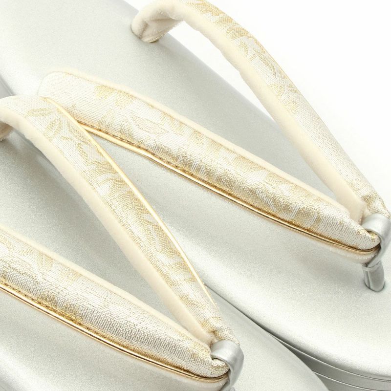 バッグ生地と花緒には、金銀糸をふんだんに使用して柄を描いた、清楚で上品なデザインです。