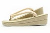 バッグ生地と花緒には、金糸をふんだんに使用して柄を描いた、清楚で上品なデザインです。