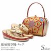 帯地を使用した振袖用草履バッグセットです。 バッグ生地と花緒には上質な金糸が織り込まれ、成人式や卒業式などに相応しい華やかで高級感あるデザイン。 バッグと同じデザインの草履の花緒が統一感をプラスしています。 青地をベースに、金糸で華紋に菱が織り込まれている高級感あふれるデザイン。 2色使いのバイカラーで華やかな雰囲気をもつ草履は、かかとの高さが約6.0cmのヒール高で、クッション加工が施されており、 歩きやすく一層お着物姿を美しく演出します。 バッグの容量は、お財布や携帯電話などが入る程良い大きさ。 成人式や結婚式の振袖をはじめ、謝恩会や卒業式など晴着スタイルにご利用いただけます。