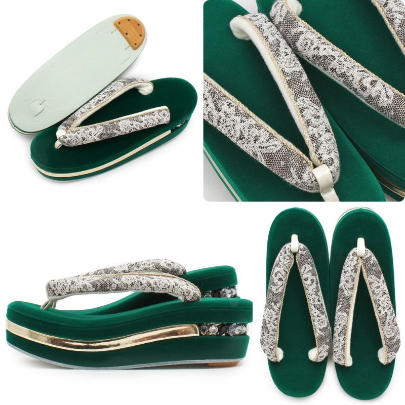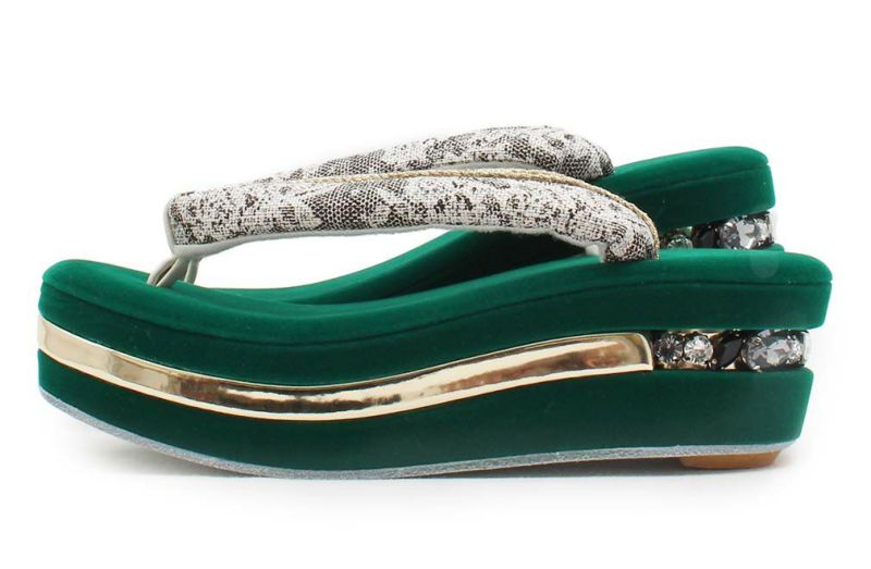 バッグ・花緒:グリーン・ブラック・ホワイト 草履台:グリーン