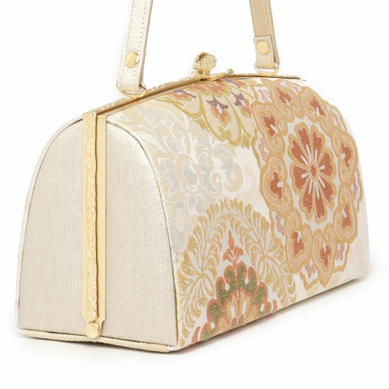 バッグ・花緒:シルバー・ゴールド・ややオレンジかかったゴールド・オレンジ・緑 草履台:ゴールド