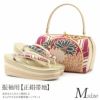 正絹帯地を使用した振袖用草履バッグセットです。 バッグ生地と花緒には、金糸をふんだんに使用して毘沙門亀甲に菊などが織り込まれており、振袖スタイルに相応しい豪華で華やかさのあるデザインです。 バッグと同じデザインの草履の花緒が統一感をプラスし、お着物姿をより一層華やかに演出します。 柔らかなクッション加工が施された履きやすさ抜群の逸品。 足裏にあたる部分はなだらかな曲線で歩きやすく、初心者の方にも安心の履き心地です。 かかとの高さは約8cmのヒール高で、小柄なお嬢様はもちろん、身長の高いお嬢様の着姿をも美しく魅せ、歩きやすく足への負担を軽減します。 バッグの容量は、お財布やスマホなどが入る程良い大きさ。 成人式や結婚式の振袖をはじめ、謝恩会や卒業式など晴着スタイルにご利用いただける振袖用草履バッグセットです。