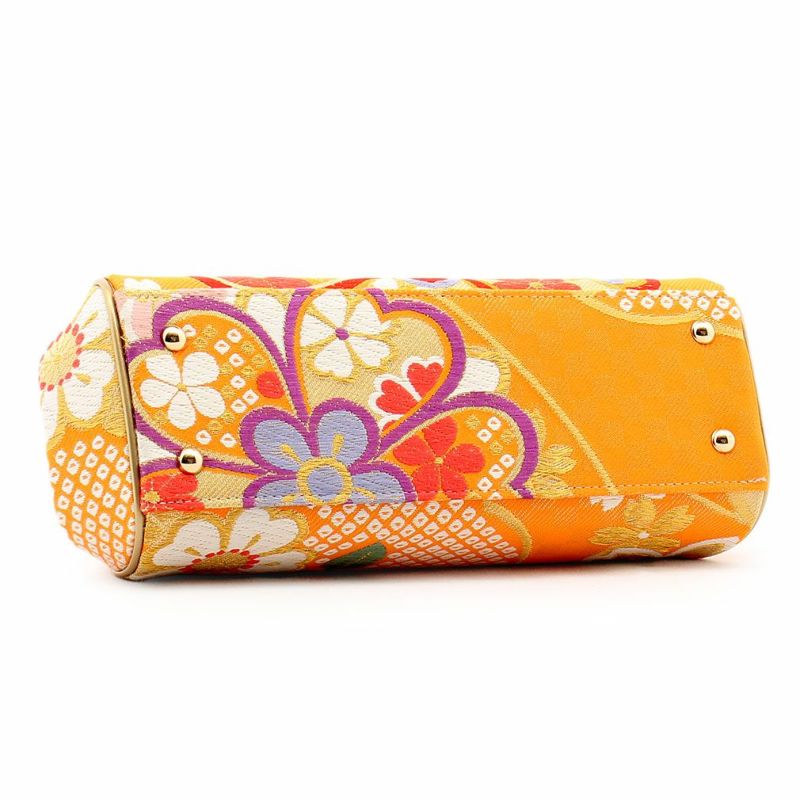 またこちらのバッグは、側面の形状上、帯地ならではの刺繍糸・金糸等の浮きなどが見まれますが、商品不良ではございませんので予めご了承くださいませ。