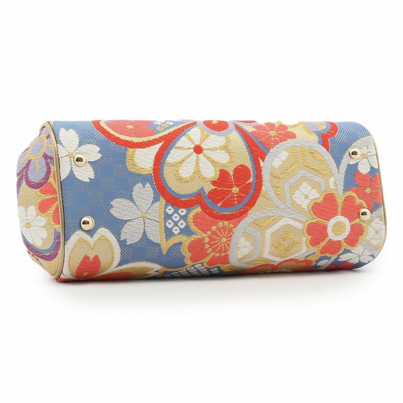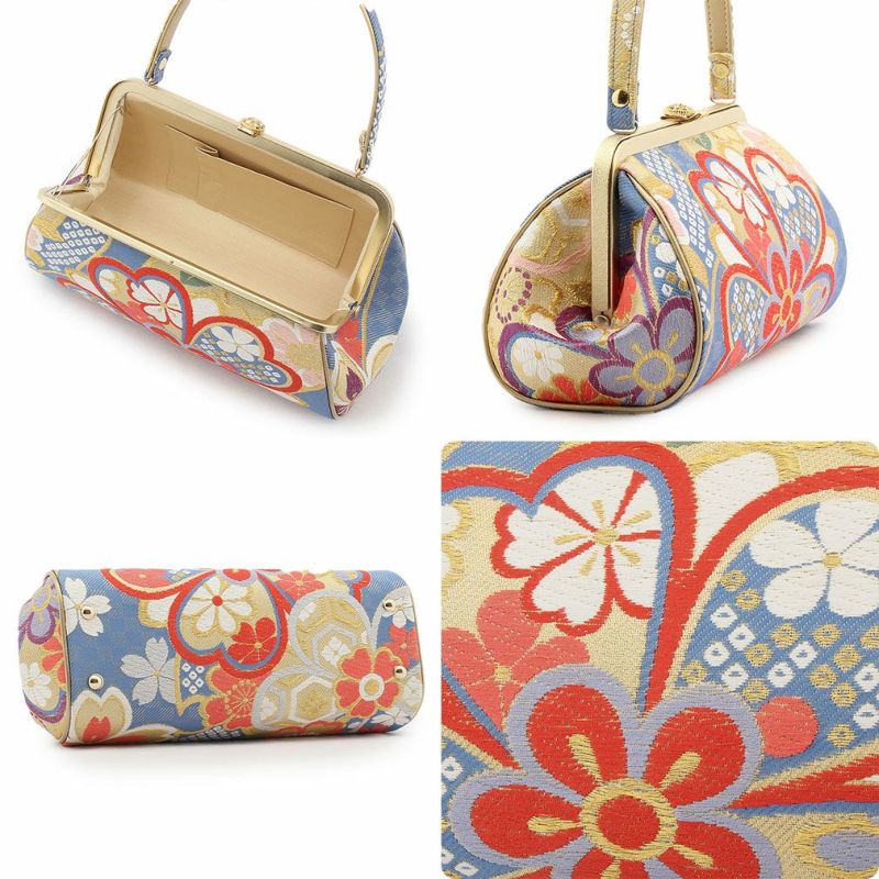 ※実際の商品と同じ色合いに画像修正をしておりますが、環境やモニターの違いにより多少色の違いが出て来ることがあります、ご了承ください。 ※帯地を使用した商品は、商品の性質上どうしても糸のほつれが発生してしまいます。 またこちらのバッグは、側面の形状上、帯地ならではの刺繍糸・金糸等の浮きなどが見まれますが、商品不良ではございませんので予めご了承くださいませ。 ※生地の取り方により、柄の出方が異なる場合がございます。 また、製造時期により金具のデザインが若干変更となる場合がございます。 ※製造するうえで十分に注意しておりますが、どうしても傷や汚れ、染料飛びや染料欠けなどができる場合がございます。また、金具部分は金属の性質上、変色やくすみ、傷や汚れなどがある場合がございます。予めご了承のうえ、お買い求めください。