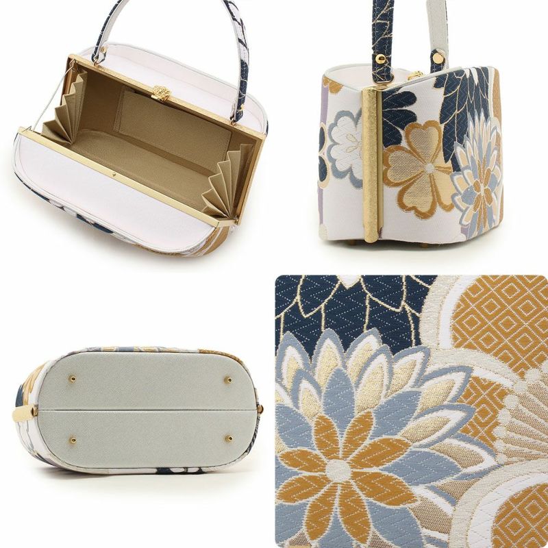 ※実際の商品と同じ色合いに画像修正をしておりますが、環境やモニターの違いにより多少色の違いが出て来ることがあります、ご了承ください。 ※帯地を使用した商品は、商品の性質上どうしても糸のほつれが発生してしまいます。商品不良ではございませんので予めご了承くださいませ。 ※生地の取り方により、柄の出方が異なる場合がございます。 また、製造時期により金具のデザインが若干変更となる場合がございます。 ※製造するうえで十分に注意しておりますが、どうしても傷や汚れ、染料飛びや染料欠けなどができる場合がございます。また、金具部分は金属の性質上、変色やくすみ、傷や汚れなどがある場合がございます。予めご了承のうえ、お買い求めください。