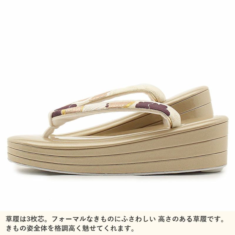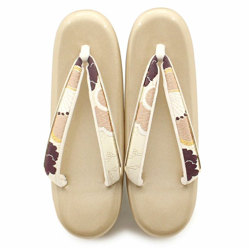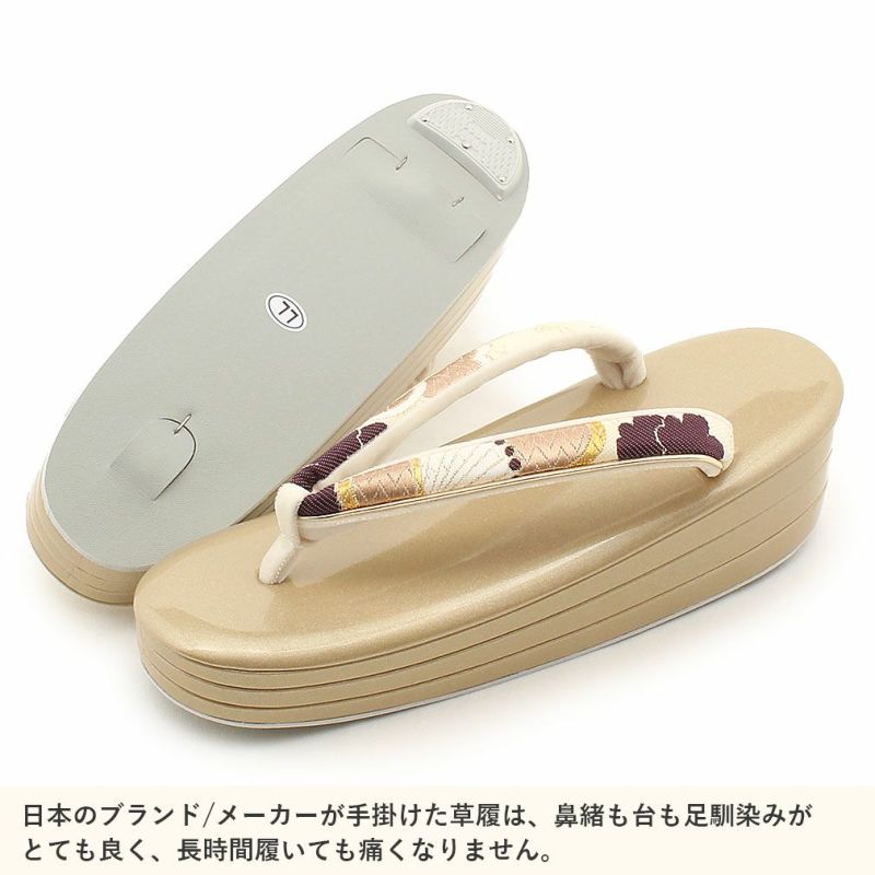 バッグ・花緒:オフホワイト・ゴールド・こげ茶 草履台:ゴールド