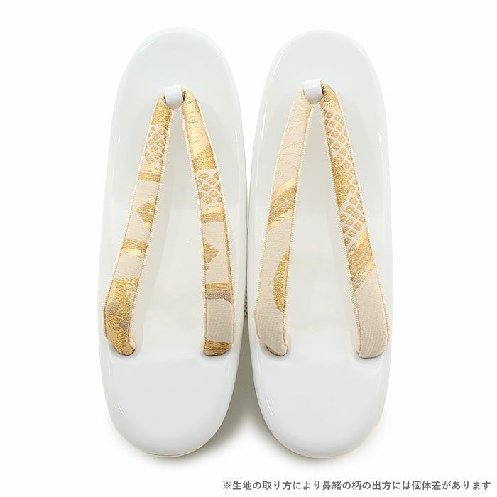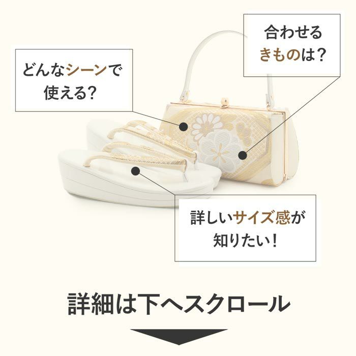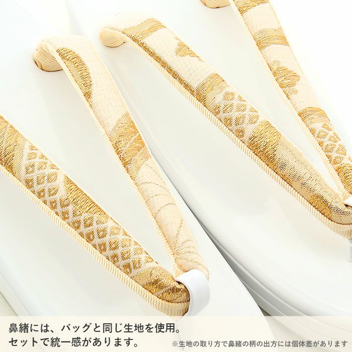 鼻緒にはバッグと同じ生地が使われており、上品な輝きとコーディネート全体の統一感を演出します。