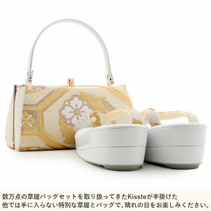 4. 草履バッグセット 成人式 振袖用 キステオリジナル Sサイズ Mサイズ Lサイズ LLサイズ 蜀江 菊 梅 金 白 クリーム 水色 帯地 エナメル 2枚芯