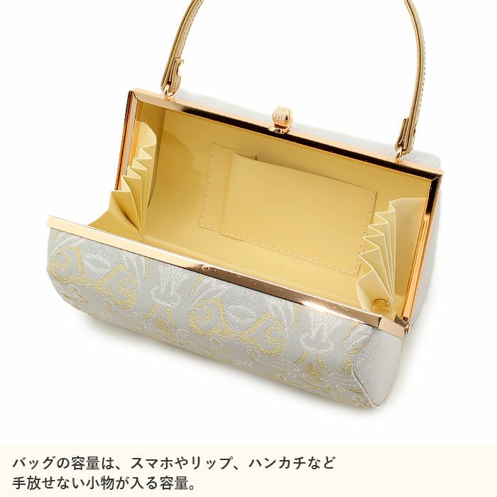 バッグは、小ぶりなお財布やスマートフォン、ハンカチや口紅などの手放せない手荷物が入る容量。