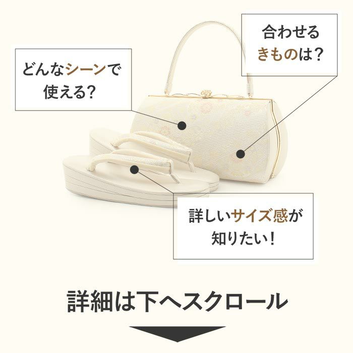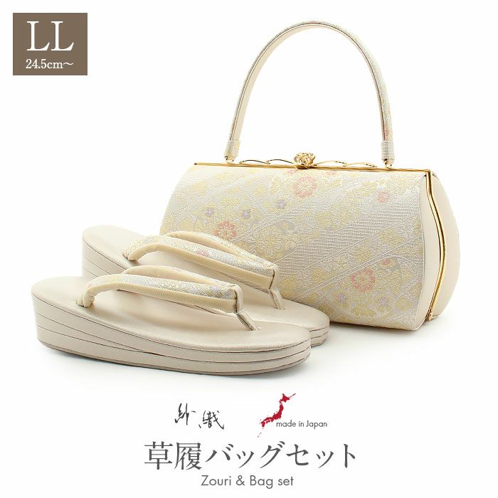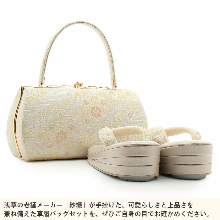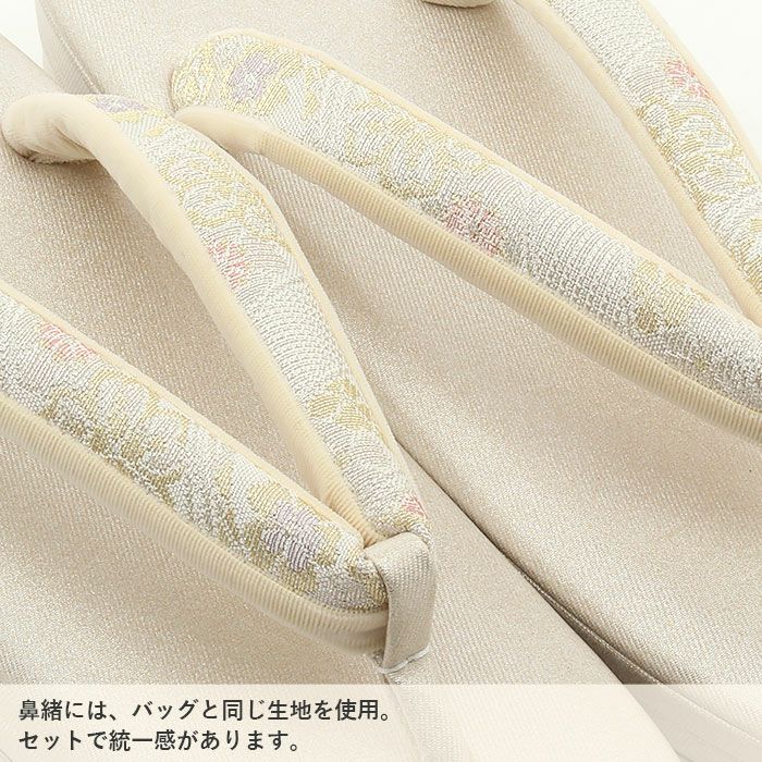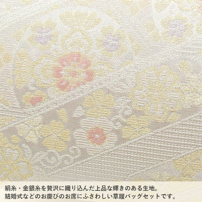 バッグ・花緒:シルバー・明るめのゴールドなど 草履台:アイボリー