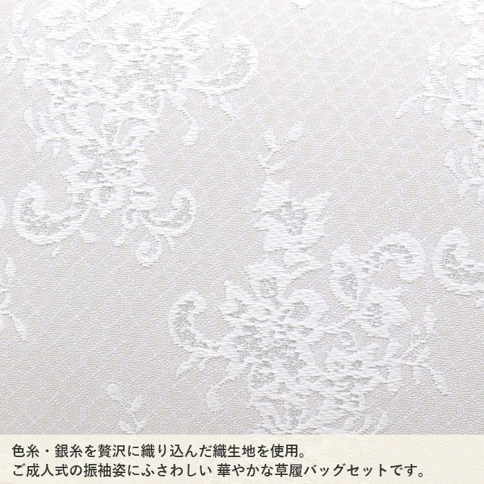 バッグ・花緒:ホワイト・シルバー 草履台:柔らかい艶やかなホワイト