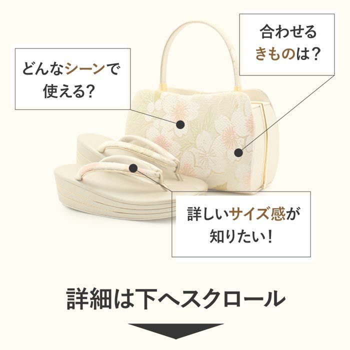 バッグ・花緒:クリーム・ホワイト・ピンクなど 草履台:シャンパンゴールド