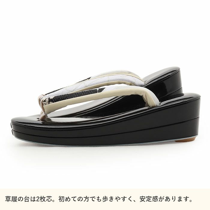 バッグ・花緒:ホワイト・ブラック 草履台:ブラック