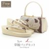 成人式や結婚式での振袖や卒業袴に合わせていただける草履バッグセットです。 わずかな機会でも新品の草履バッグセットですがすがしくお出かけしていただけるよう、お手頃価格でご用意いたしました。 落ち着いた小豆色を基調に、煌めくベージュゴールドやグレーなどのお色で、丁寧に織り出されたユリ文様が優雅に広がります。 金銀糸の輝きが意匠を際立たせ、特別な日の装いを華やかに引き立てます。 ■バッグはコンパクトながら、小ぶりなお財布やスマートフォン・ハンカチや口紅などの手放せない手荷物が入る収納力があり、お祝いの席にもぴったりな洗練されたデザイン。 口金タイプで開閉しやすく、実用性にも優れています。 ■草履は艶を抑えた上品なシャンパンゴールドの草履台にバッグと共布の鼻緒を添え、上品で統一感のあるコーディネートを演出。 2枚芯の程よい高さで安定感もあり、クッション性のある柔らかな履き心地で長時間のご着用も安心です。 華やかな装いを楽しみたい日のおともに、ぜひお手に取っていただきたい草履バッグセットです。