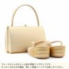 ■晴れの日に、さりげない格を添える佐賀錦の草履バッグセット■ 落ち着いたゴールドが、着物姿を上品に引き立てる フォーマルシーンにふさわしい佐賀錦の草履バッグセットです。 華やかさはありながらも主張しすぎず、 結婚式や式典、改まったお席にも自然になじむデザイン。 日本製ならではの丁寧な仕立てで、 大切な一日を足元からそっと支えてくれます。 ―おすすめポイント― ・華やかさと上品さを兼ね備えた佐賀錦生地を使用 ・フォーマルに合わせやすい落ち着いたゴールド ・必要な小物がしっかり入る、使いやすいバッグ ・格調高い印象のある二の三枚芯草履 ・かかとは高すぎない、歩きやすい高さ ・日本製の丁寧な仕立てで、安心感のある履き心地 大切な日の装いに、控えめな華やぎを。 長く愛せる、フォーマル草履バッグセットです。 ※職人が一つひとつ手作業で仕立てているため、バッグの内側に接着剤の跡が見られる場合がございます。 いずれもご使用には差し支えのない範囲となっておりますので、あらかじめご了承ください。