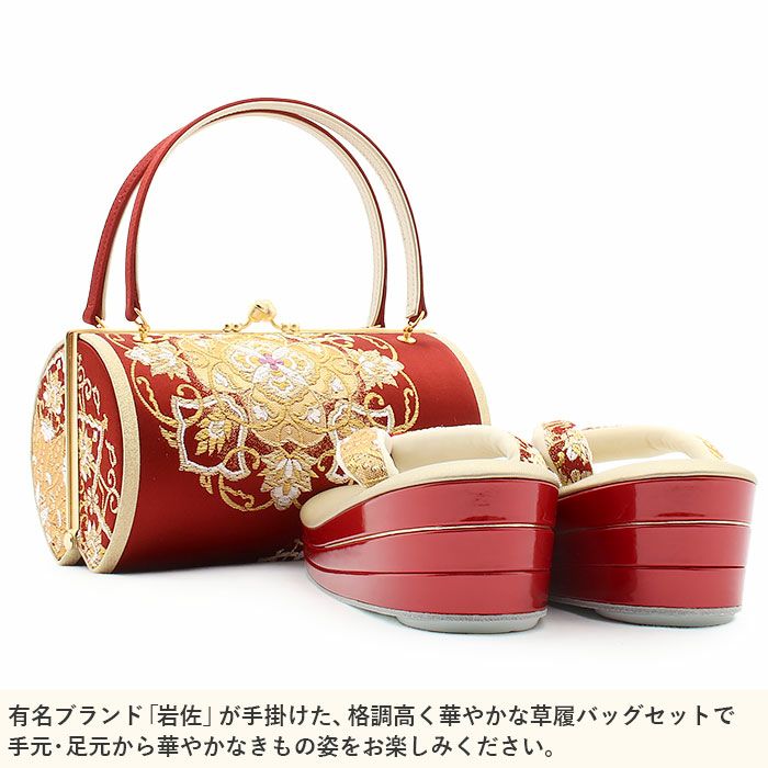 他の画像を見る 痛くなく歩きやすい、初めての方にも安心の履き心地 草履バッグ セット 成人式 振袖用 草履バッグセット 紗織 Mサイズ レッド 赤 金 バラ ばら 正絹袋帯地 4枚芯 厚底 日本製 当店特別価格 ¥ 38,500 税込 (0) カートに入れる お気に入りに登録する
