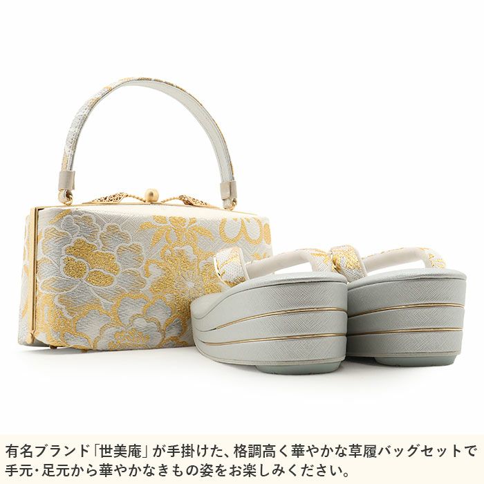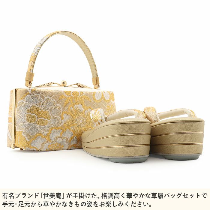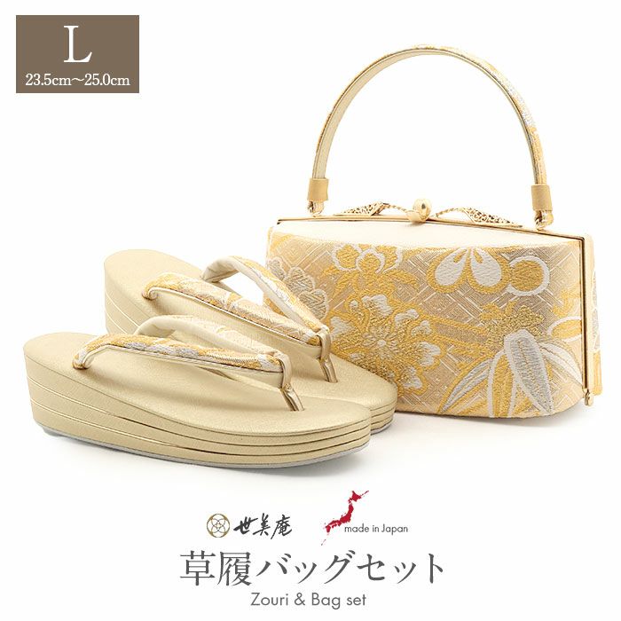 他の画像を見る 痛くなくて歩きやすい、初めての方にも安心の履き心地 留袖用草履バッグセット 訪問着用 草履バッグ 世美庵 Lサイズ ゴールド シルバー 金 銀 七宝 華紋 帯地 3枚芯 日本製 SALE 定価 ¥ 47,300 のところ 当店特別価格 ¥ 42,570 税込 (0) カートに入れる お気に入りに登録する