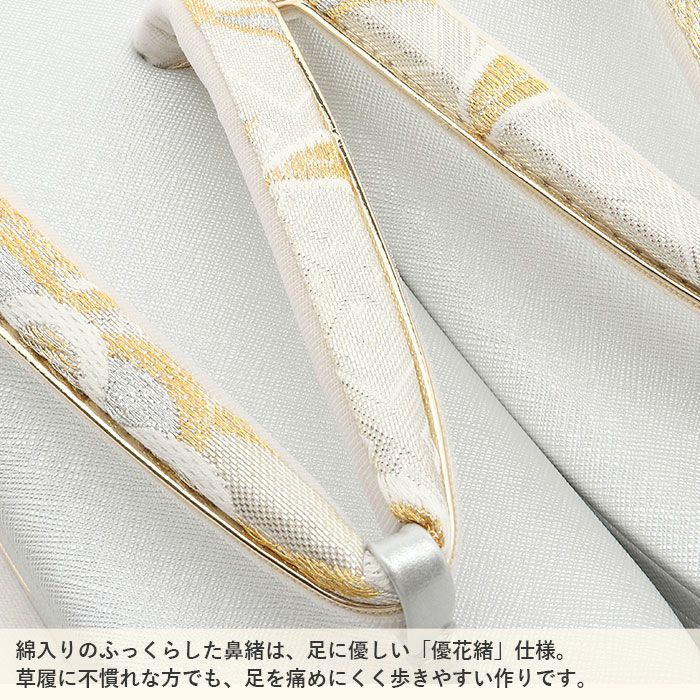 他の画像を見る 草履バッグセット 礼装用 <世美庵> Sサイズ Mサイズ Lサイズ LLサイズ コード刺繍 <優花緒草履/ゴールド・シルバー> SALE 定価 ¥ 47,300 のところ 当店特別価格 ¥ 42,570 税込 (0) カートに入れる お気に入りに登録する