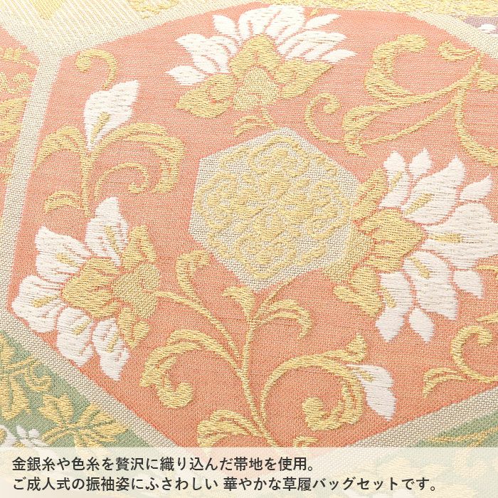 痛くなく歩きやすい、初めての方にも安心の履き心地 振袖 草履バッグセット 成人式 草履バッグセット 振袖用 世美庵 Lサイズ 花紋 菊 桜 振袖用帯地 エナメル 3枚芯 優花緒 日本製 SALE 定価 ¥ 52,800 のところ 当店特別価格 ¥ 47,520 税込 (0) カートに入れる お気に入りに登録する