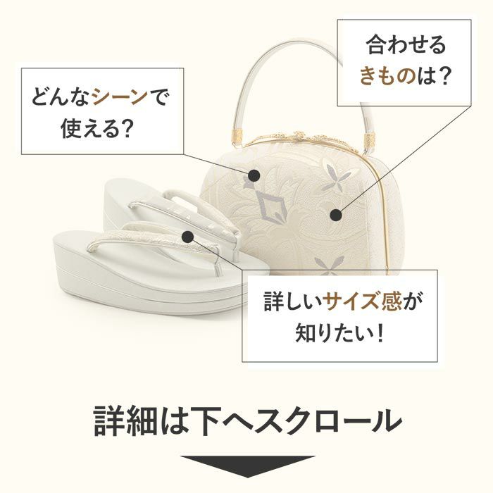 他の画像を見る ≪在庫限り≫ 成人式や結婚式の華やかな振袖に 成人式 草履バックセット 振袖 草履バッグセット 草履 バッグ 世美庵 L シルバー 銀 ホワイト 菊 牡丹 笹 菱 帯地 3枚芯 日本製 SALE 定価 ¥ 41,800 のところ 当店特別価格 ¥ 37,620 税込 (0) カートに入れる お気に入りに登録する