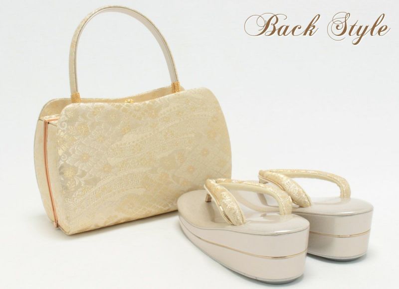 バッグ・花緒:ゴールド 草履台:シャンパンゴールドに金箔たたき