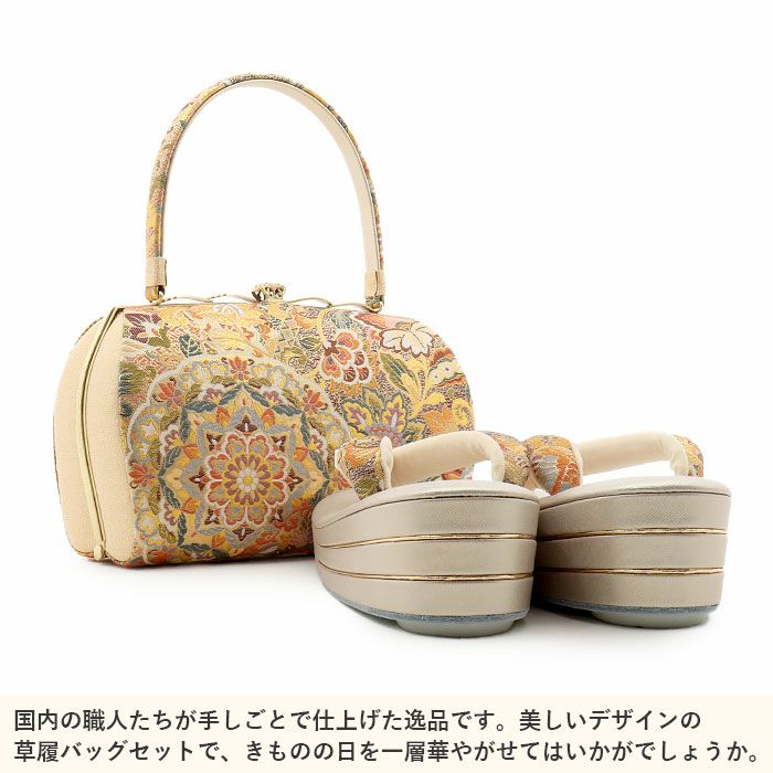 他の画像を見る 痛くなくて歩きやすい「優花緒」仕様 留袖用草履バッグセット 訪問着用 草履バッグ 世美庵 Lサイズ 金 銀 パール コード刺繍 3枚芯 日本製 優花緒 2way 和洋兼用 SALE 定価 ¥ 47,300 のところ 当店特別価格 ¥ 42,570 税込 在庫切れ (0) 詳細を見る お気に入りに登録する