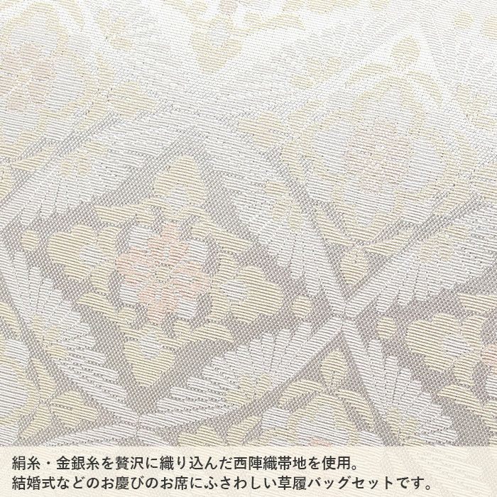 他の画像を見る ≪在庫限り≫ 結婚式の黒留袖 色留袖や訪問着に 草履バッグセット 留袖用 訪問着用 草履バッグ 世美庵 LL シルバー 銀 ホワイト 2枚芯 菊菱 銀たたき 優花緒 正絹袋帯地 日本製 当店特別価格 ¥ 41,800 税込 在庫切れ (0) 詳細を見る お気に入りに登録する