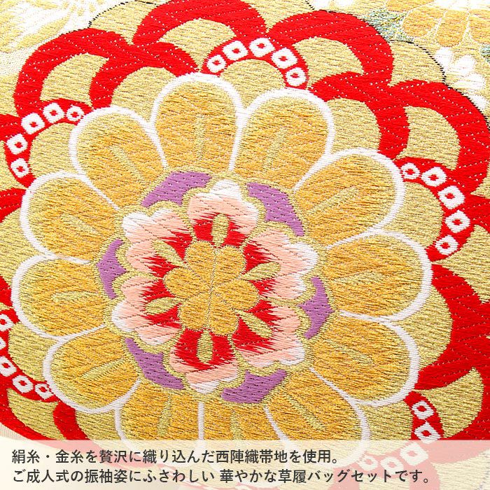 他の画像を見る 痛くなく歩きやすい、初めての方にも安心の履き心地 草履バッグセット 成人式 振袖用 成人用 世美庵 Lサイズ 赤 レッド ゴールド 花紋 桜 袋帯地 3枚芯 日本製 当店特別価格 ¥ 47,300 税込 在庫切れ (0) 詳細を見る お気に入りに登録する