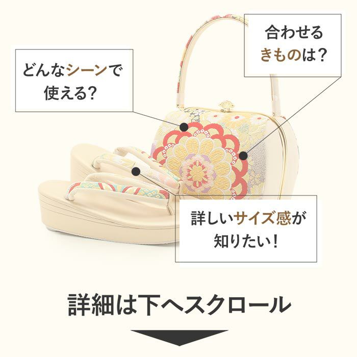 他の画像を見る 成人式や結婚式の華やかな振袖に合わせたい草履バッグセット。 草履バッグセット 振袖用 世美庵 Lサイズ フリー クリーム モーヴピンク 七宝 正絹 3枚芯 優花緒 日本製 当店特別価格 ¥ 41,800 税込 在庫切れ (0) 詳細を見る お気に入りに登録する