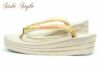 草履は職人さんの手作りによる金箔が散りばめられたゴールドの艶やかなエナメル3枚芯優花緒草履。