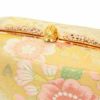 ゴールドをベースとした京都・西陣織の正絹袋帯地を使用したバッグ生地と花緒は、優しい色使いの桜や辻ヶ花が織り込まれた、フォーマルなシーンに相応しい華やかで上品なデザインです。
